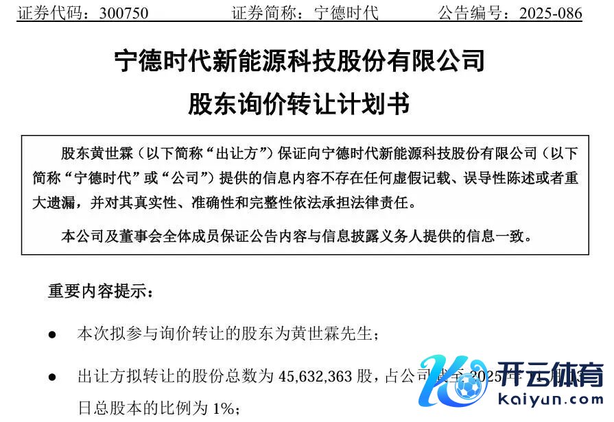 宁德期间(300750)11月14日深夜公告,公司推进拟通过询价相貌转让所执公司A股股份;转让的股份数目为4563.24万股,占公司总股本的比例为1%。