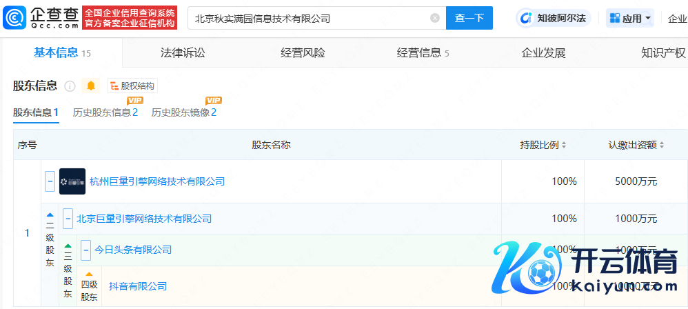 企查查APP显现开云kaiyun.com,近日,北京秋实满园信息时刻有限公司发生工商变更,原鞭策陈友珍、陈东仙退出,新增抖音旗下杭州巨量引擎集合时刻有限公司为鞭策,捏股比例100%;公司注册成本由100万东谈主民币增至5000万东谈主民币;同期,公司主要东谈主员亦发生变更。