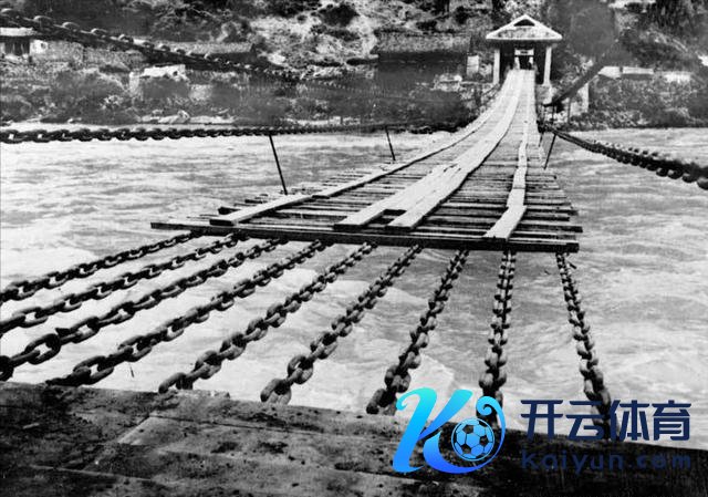 这是一座铁索桥,桥身长一百多米,宽度仅三米。当他们抵达时,桥梁已遭敌东说念主杂乱,木板被拆除了泰半,只剩铁索露馅在外,显得有些破烂不胜。