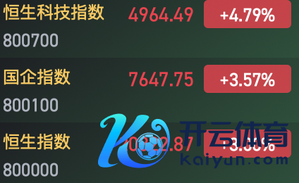 2月4日音书,港股三大指数抓续冲高,完了发稿,恒指涨3%,恒生科指涨近5%,国企指数涨超3%。科网股领涨大市,好意思团、京东涨超6%,京东涨超4%,阿里巴巴涨近4%,半导体认识股高涨,中芯海外涨超7%,中资券商股皆涨,中信证券、中国银行、国泰君安涨超4%。